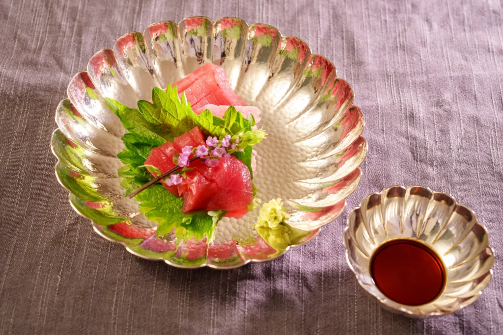 東北の魚介は、旨味がしっかりしているのが特徴。まぐろは切り立ての状態で供され、余計な味付けをせず素材本来の甘みと清らかな香りが引き立つ。淡口醤油を添えることで、海の旨味がより一層際立つよう工夫されている。