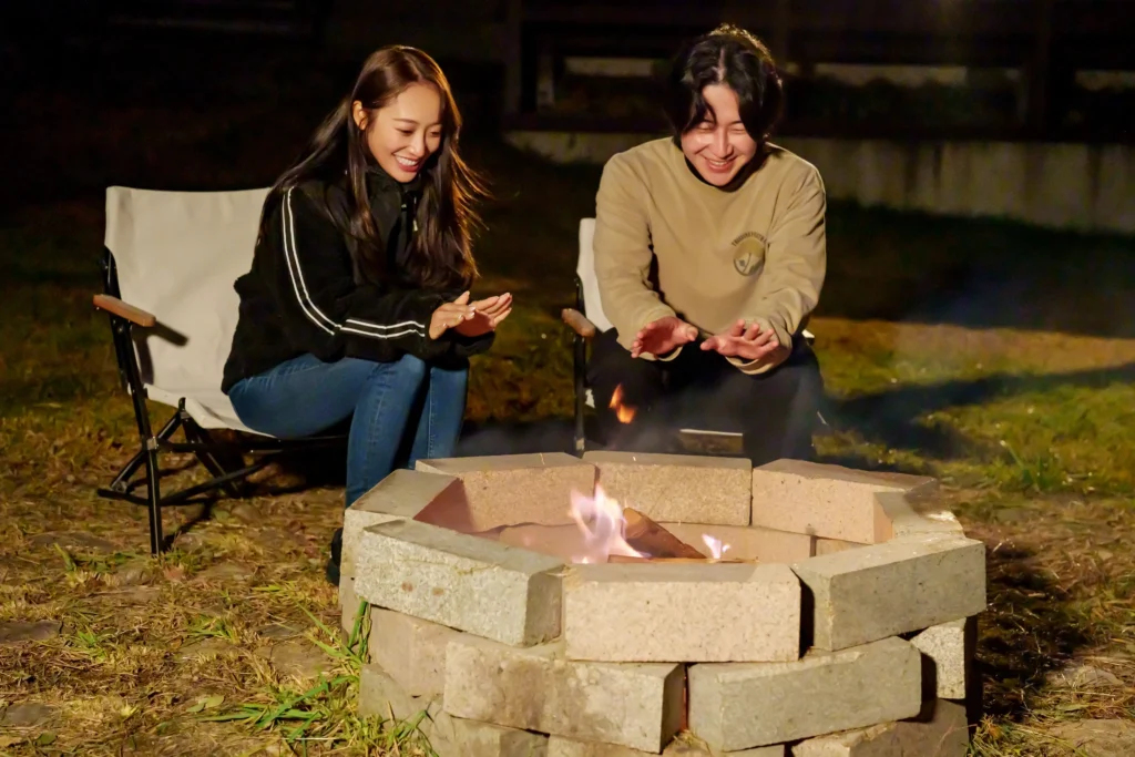 ロッジの庭では、夜に焚き火ができる。街灯のない高原では、炎だけが夜を照らし、視線を上げれば満天の星。炎の音、冷たい空気、遠くの山の静けさ。旅の2日目をしめくくるには、これ以上ないほど豊かな時間だ。