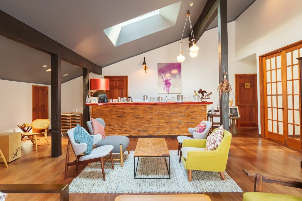 木の温もりに包まれたラウンジには、無料のコーヒーやワイン、地元のお菓子などが並び、高原を眺めながらゆったり過ごせる。客室は、モダンでありながら自然素材が調和した落ち着きある空間。大きな窓の外には、秋なら紅葉が揺れ、まるで森に抱かれているような感覚になる。
