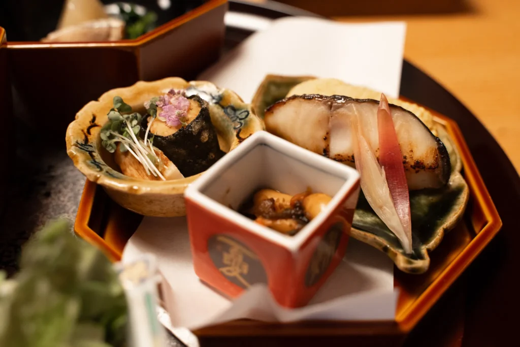 続いて出されたのは、艶やかな黒塗りの八角重箱。三段重ねの箱をそっと開けるたびに、目にも舌にも嬉しい驚きが広がりました。今回はその中でも驚いた一段目・二段目を詳しくご紹介します。