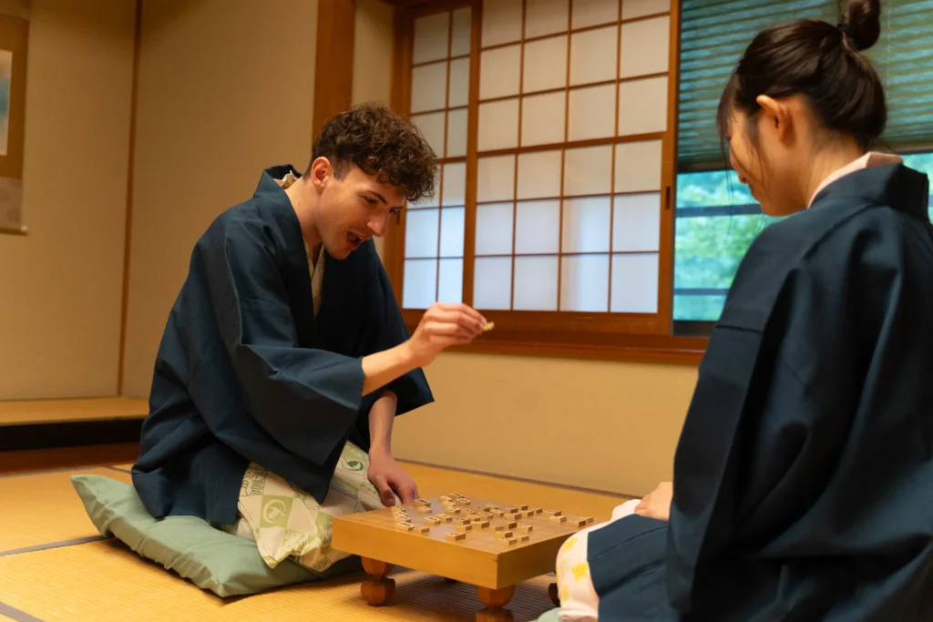 玄関先にはふわりと香る茶香炉、机の上には折り紙や将棋といった日本の遊び心あふれる仕掛けが。細部にまで心を宿したおもてなしは、藤龍館ならではの品格とまごころを物語っているようでした。
