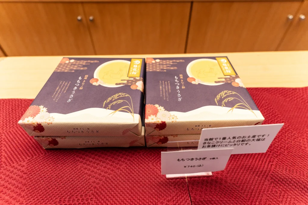 藤龍館特製の銘菓「もちつきうさぎ」の購入も可能です。きな粉と白餡の優しい甘さが評判で、人気No.1だそう。ウェルカムドリンクとともにいただいた際にファンになってしまった私もお土産に購入しました。