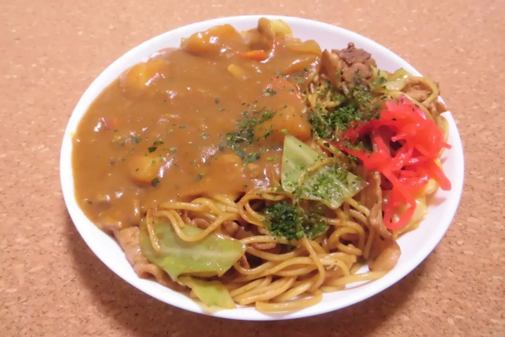 カレーにコクがあり、焼きそばは短く切ってあり、食べやすいです。