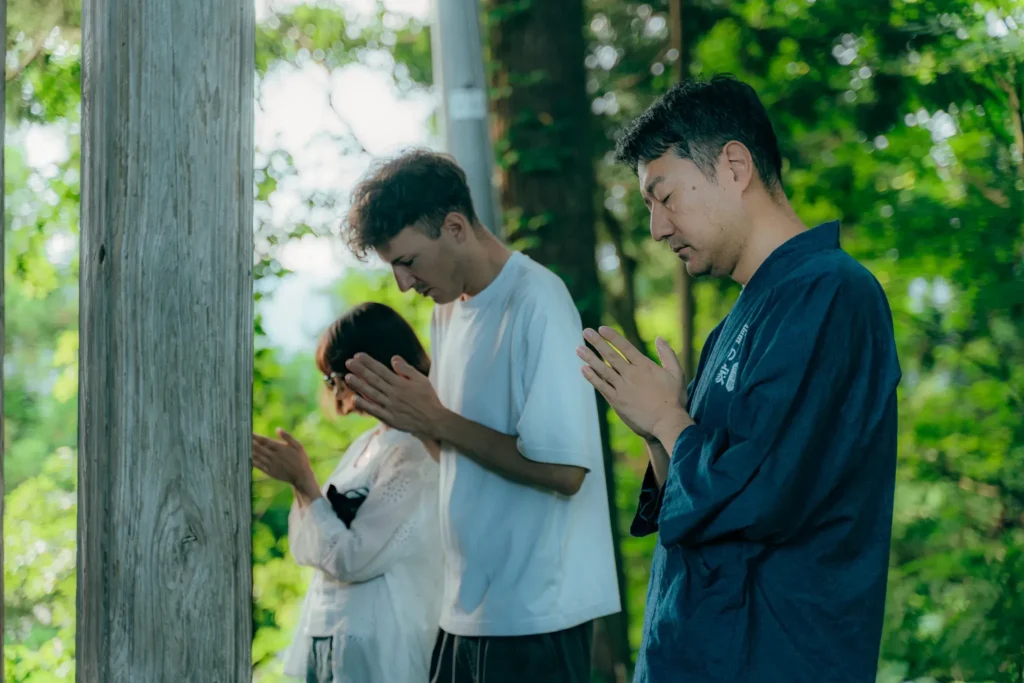 小さな祠で手を合わせ、静かに山へ入っていく。