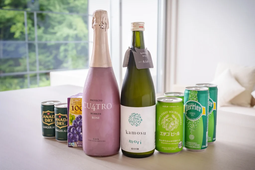 冷蔵庫にはクラフトビールや日本酒、ワイン、地元のお菓子まで揃い、フリードリンクとは思えないほど充実している。