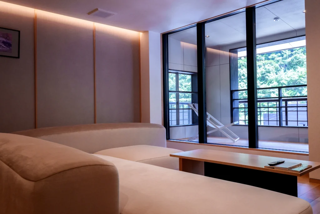 寬敞的起居空間、可下廚的廚房、舒適的餐桌區,甚至還有專屬的客房露天風呂——老實說,只待在這個房間裡,就足以成就一場完整的旅程。