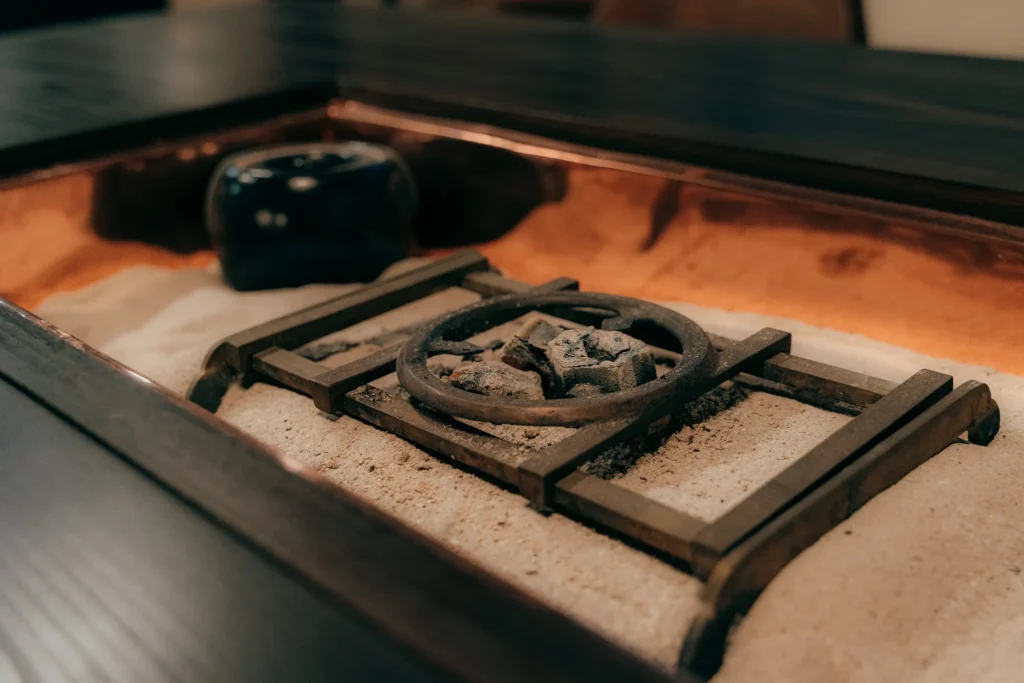 傍晚要用圍爐,於是我們先去超市買材料,自己動手煮壽喜燒。第一次用圍爐,超級興奮。白米是新潟米,用土鍋炊煮,再盛入「木製飯櫃(おひつ)」。我也是第一次知道,為什麼還要特地「再裝進飯櫃」:其實理由很單純——切斷鍋內餘溫、防止水氣又被米粒吸回去,木頭會吸掉多餘水分,讓米飯不會糊爛;木質也會適度調節濕度,就算放涼了味道也不太會變差。最後的結果就是米粒分明、拿來捏飯糰也超好吃。把飯移到飯櫃,是很日本式的做法;不只旅館,以前一般家庭與壽司店都很常見。木頭會帶走多餘水分與熱度,讓米飯維持在剛好的狀態,所以相較於「保溫」,更不容易讓味道走樣。