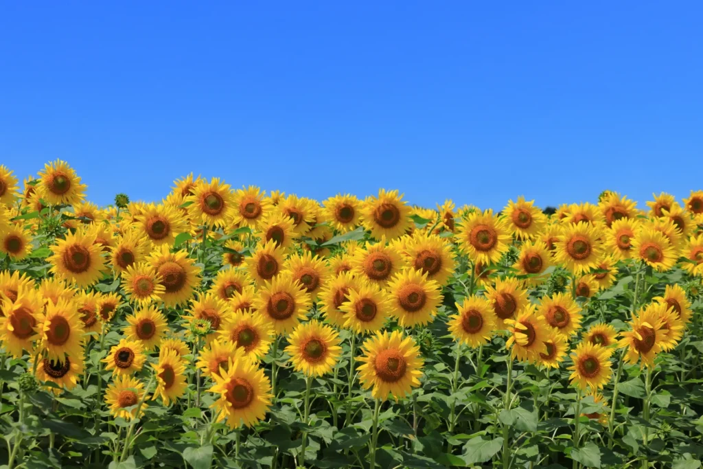 Next, the Sannokura Plateau Sunflower Field is a summer spectacle, where about 1 million sunflowers bloom in a vast field. The sight of these sunflowers turning toward the sun under the bright blue sky is nothing short of awe-inspiring. Especially at dusk, when the sunflowers are bathed in the warm glow of the setting sun, the scene is truly enchanting. It’s the perfect place to relax and soak in the warm, floral scent.