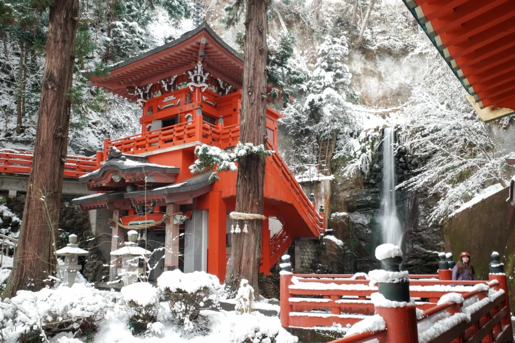 The shrine presents a different charm with each season. In spring, cherry blossoms bloom, while summer brings lush greenery, and autumn colors the leaves in beautiful hues. Winter transforms the shrine into a peaceful, snow-covered wonderland, creating a serene atmosphere.