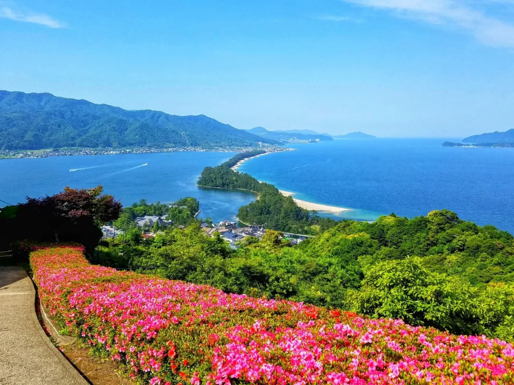 日帰りで絶景を望む日本三景の一つ『天橋立』は、京都府宮津市に位置し、天に架かる橋のように見えることから『天橋立』の名が付きました。この地を訪れたならば、是非とも「見返り美人」という伝統的な観賞方法を試してみてください。それは、足を上にして地面に額をつけ、振り返りながら景色を眺めるというものです。このユニークな方法で見る天橋立は、まるで天に続く橋のように見えると言われています。また、天橋立にはリフトやケーブルカーもあり、山頂からのパノラマビューは息をのむ美しさです。周辺には温泉施設も充実しており、日帰り旅行の疲れを癒すのに最適です。天橋立の周囲は自然に囲まれ、四季折々の風景を楽しむことができるため、一年を通して訪れる価値があります
