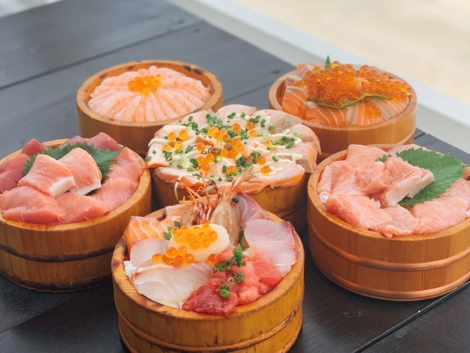 店内は明るく開放的な雰囲気で、海を眺めながら食事を楽しむことができます。おすすめの海鮮丼は、旬の魚がたっぷりと盛り付けられた一品で、色とりどりのネタが目を引きます。特に、甘エビやマグロ、サーモンなど、種類豊富な魚介が楽しめるため、海鮮好きにはたまらないメニューです。