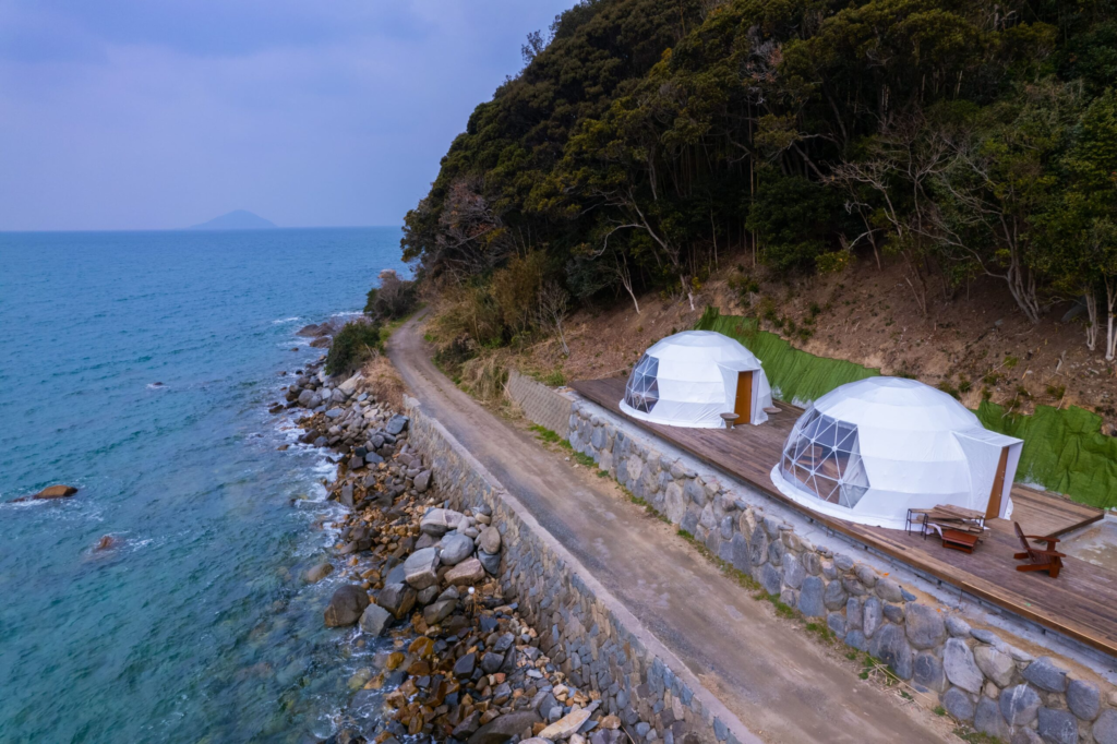 糸島の美しい海を目の前にした「LASPARK RESORT」は、家族連れにぴったりのグランピング施設です。ここでは、自然の中で贅沢な時間を過ごすことができ、子どもたちも大喜び間違いなし。広々としたテントは、快適さとスタイルを兼ね備えており、家族での宿泊に最適です。