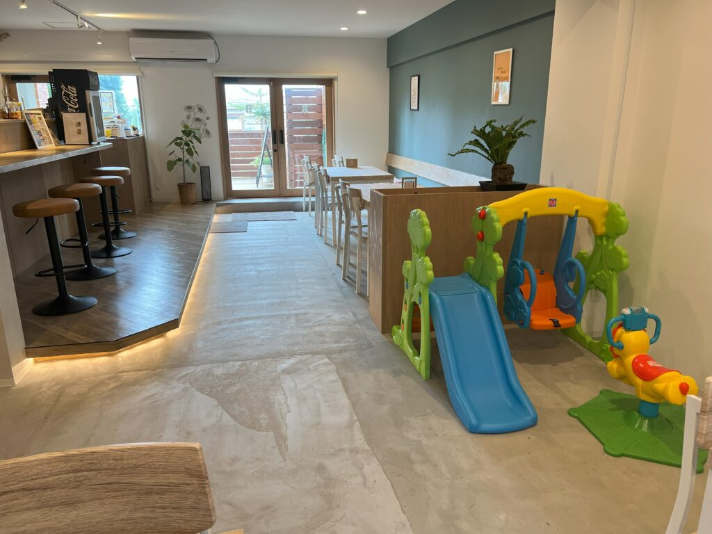 北九州市で子連れにおすすめのカフェといえば、cafeROOMです。こちらのカフェは、子どもが楽しめる滑り台やおもちゃが充実しており、親も安心してリラックスできる空間が広がっています。店内は明るく開放的で、子どもたちが遊ぶ姿を見守りながら、ゆったりとした時間を過ごすことができます。