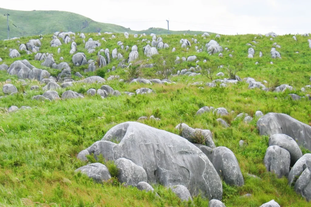 春には一面に広がる緑の草原が美しく、夏には青空と白い雲が映える絶景が広がります。特に、秋には紅葉が美しく、四季折々の風景を楽しむことができるため、ハイキングやピクニックに最適な場所です。また、カルスト台地ならではの奇岩や洞窟も点在しており、探検気分を味わうことができます。