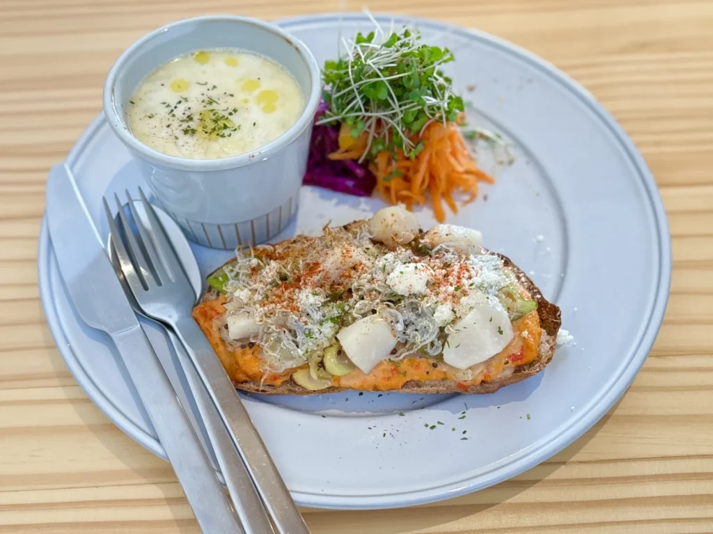 カフェのメニューには、新鮮な地元の食材を使用した料理やスイーツが豊富に揃っており、どれも見た目が美しく、思わず写真を撮りたくなるものばかり。特に、季節ごとに変わる特製のパフェや、手作りのケーキは、訪れるたびに新しい発見があります。