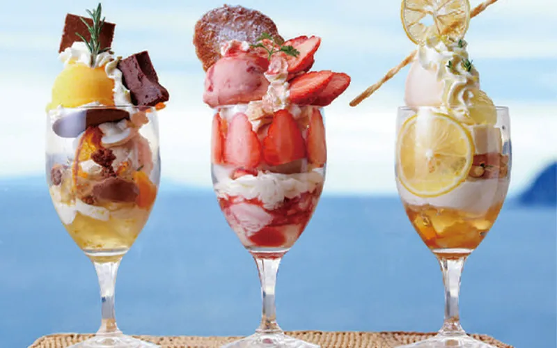 中でも、熱海の湯けむりをイメージしたスモーク演出が楽しい「フルーツパフェ」は、訪れた際にぜひ試してほしい一品です。フルーツがたっぷりのったパフェに、スモークを焚いて湯けむりを表現するというユニークな演出は、インスタ映えにもぴったり。女子旅の記念に、目にも楽しいパフェを味わいながら、ゆったりとした時間を過ごすことができます。