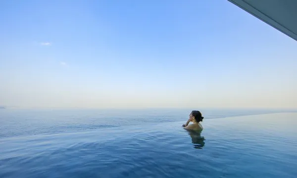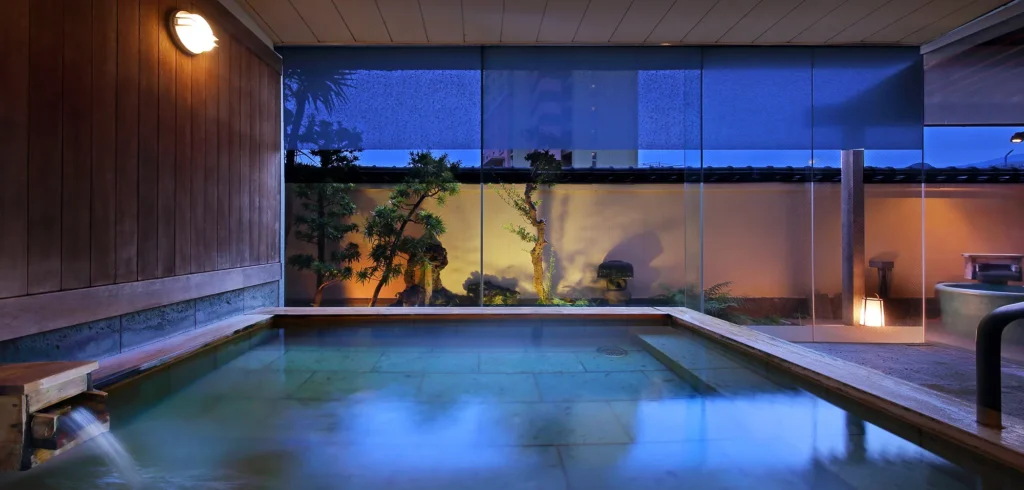 特におすすめは、全長約25メートルを誇る日本最大級の「露天立ち湯」です。まるで海に浮かんでいるかのような感覚を味わえるこの露天立ち湯からは、青空と海のコントラスト、そして夕暮れ時の沖や煌めく夜景まで一望できます。自然に囲まれ、ふわふわとした浮遊感を楽しみながら、心も体も解放される瞬間を感じられます。