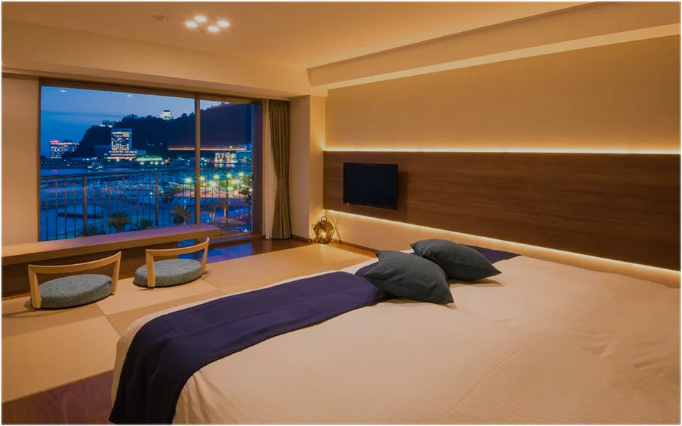 「熱海シーサイド スパ&リゾート」は、女子旅にぴったりなリラックスできるホテルです。全室オーシャンビューで、窓から見渡す熱海の海の絶景が、贅沢なひとときを演出してくれます。洋風のインテリアに和のテイストを取り入れたゲストルームは、落ち着いた雰囲気で心地よく、日常を忘れてゆっくりと過ごせます。特に、海を望む大浴場や露天風呂での温泉体験は、身も心も癒してくれる至福の時間です。