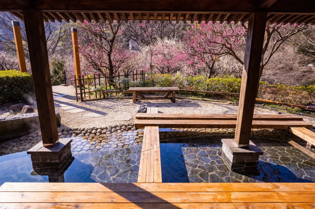 園内には約60種類の梅の木があり、色とりどりの花が咲き乱れる様子は、まるで絵画のような美しさ。梅の花が咲くシーズンには、「梅まつり」も開催され、期間中はさまざまなイベントや屋台が立ち並び、訪れる楽しさも増します。梅の花を眺めながら、ゆったりとした時間を過ごすことができるので、心のリフレッシュにもぴったりです。
