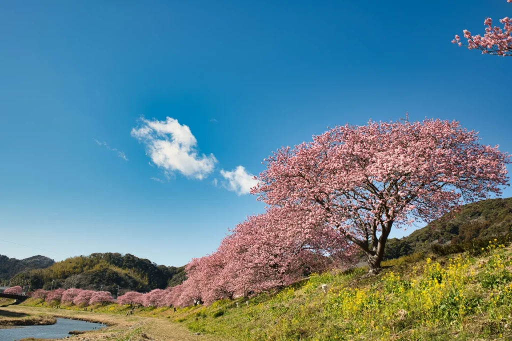 さらに、青野川周辺にはカフェや休憩スポットも点在しており、川を眺めながらのんびりと過ごせる場所がたくさんあります。地元の食材を使った料理や、伊豆の特産品を楽しむこともでき、自然の中でリフレッシュした後には、ゆっくりとした食事を楽しんでください。