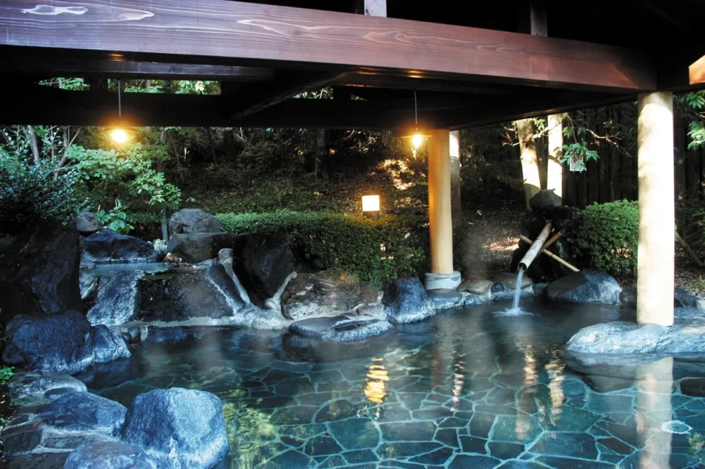 温泉は、源泉かけ流しの贅沢な湯で、肌に優しい成分が含まれており、リラックス効果も抜群。特に、露天風呂では、雨のしずくが葉に落ちる音を聞きながら、自然の中でのひとときを楽しむことができます。カップルでの訪問にもぴったりで、二人の距離をさらに縮めるロマンチックな空間が広がっています。