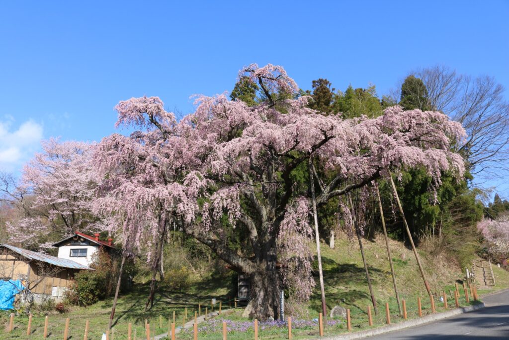 春になると、会津若松の石部桜はその美しさで訪れる人々を魅了します。この一本桜は、樹齢約650年を誇る大木で、春の訪れとともに見事な花を咲かせます。特に、満開の時期にはその姿がまるで絵画のように美しく、周囲の風景と相まって絶景を生み出します。