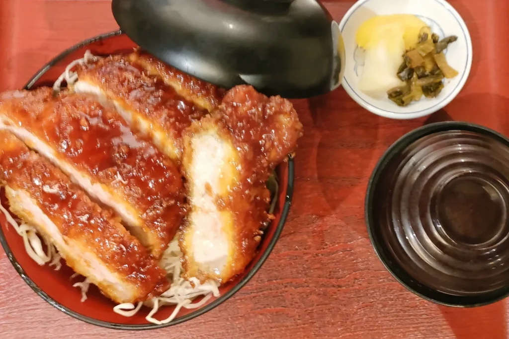 福島の旅の最後を飾るのは、会津名物のソースカツ丼です。サクサクの衣に包まれたジューシーな豚カツが、特製のソースと絡み合い、食欲をそそります。会津地方では、ソースカツ丼はご飯の上にカツが乗せられ、さらにその上からたっぷりのソースがかけられるスタイルが一般的です。ボリューム満点で、満足感も抜群です。