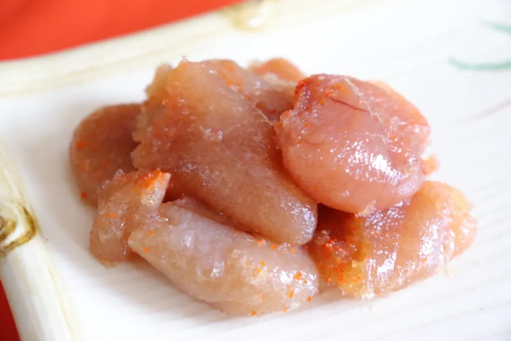 次に、太宰府参道で見逃せないのが「いちご大福」。福岡は新鮮な苺が豊富で、いちご大福が地元でも人気のスイーツです。ジューシーないちごを、甘さ控えめの餡ともち米で包んだいちご大福は、程よい甘さと酸味が絶妙にマッチして、口の中で広がります。特に、参道の一部のお店では季節限定で提供されることもあるので、タイミングが合えば、旬のいちごを使用した大福を楽しむことができます。