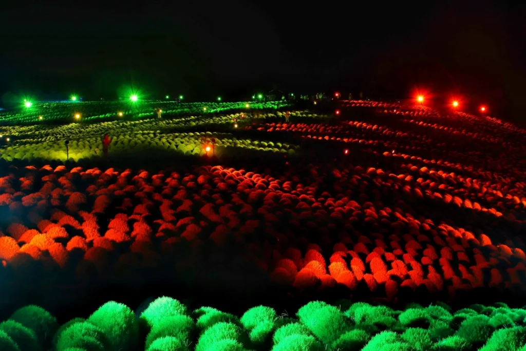 秋には、約3万本のコキアが真っ赤に色づき、まるで赤い絨毯が広がるような風景が楽しめます。紅葉の季節に訪れると、自然の美しさに心が癒されること間違いなしです。公園内にはサイクリングコースや観覧車もあり、アクティブに楽しむこともできます。