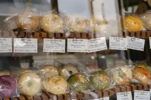 ベーグルは海道産小麦に白ごまと黒ゴマを練り込んだ「セサミ」味や北海道産ライ麦を使用した「ライ麦」味、川越名物紫いもの生地にあんことクリームチーズを巻き込んだ「川越紫」など、約30種のベーグルがあります。