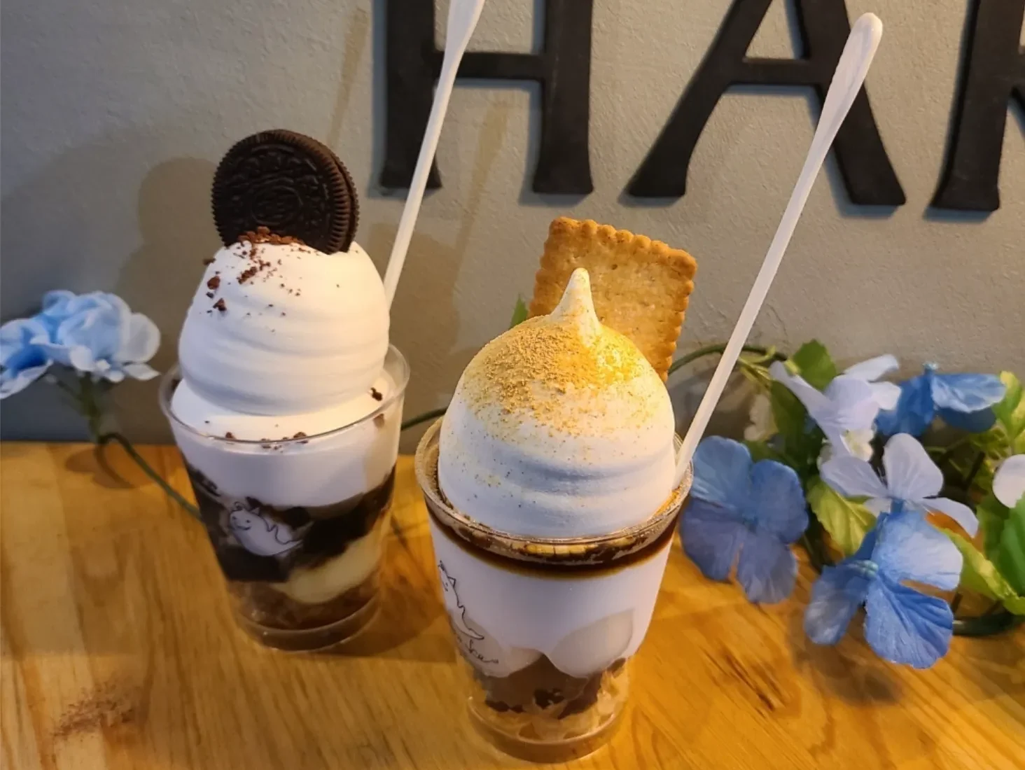 このお店は、独自開発した自家製の捜索パフェにこだわりがあり、特に、アイスクリーム、パフェ、クレープなどに使われるソフトクリームは20代の元板前シェフのこだわりが詰まっています。