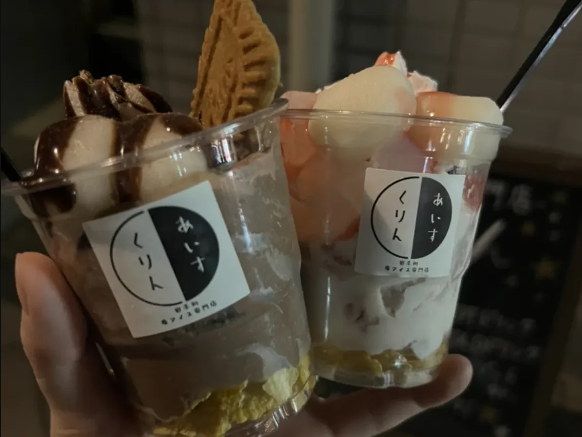 静岡市にある「アイスは夜食」は、静岡発の夜アイス専門店です。店名の通り、夜食感覚でアイスを楽しむことができるユニークなお店で、深夜に甘いものが欲しくなったときにぴったりです。店内は落ち着いた雰囲気で、リラックスしながらアイスを味わえる空間が広がっています。