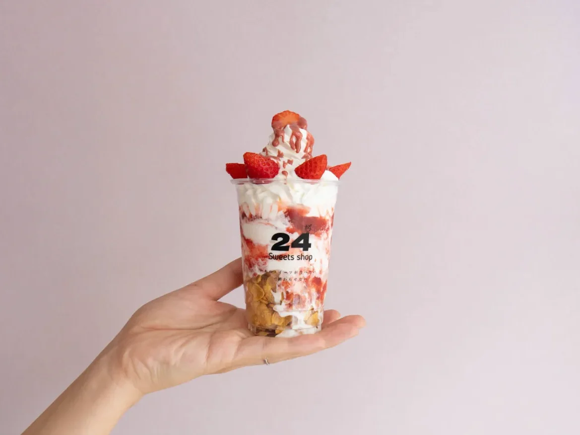 24スイーツショップの最大の特徴は、なんといっても24時間購入可能ということです。アイスの種類も豊富で、15種類のフレーバーがあります。特に人気のフレーバーは、イチゴ尽くしの「苺づくしのソフトクリーム」や、ぷるんぷるんの絶品わらび餅が入った「抹茶づくしソフトクリーム」です。