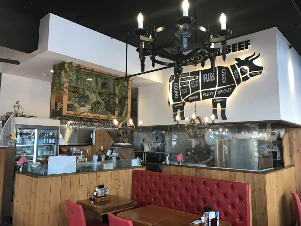 店内はカジュアルな雰囲気で、友人や家族と一緒にワイワイ楽しむのにぴったり。特に、シェアして食べるスタイルが人気で、豪快なステーキを囲んで会話が弾むこと間違いなしです。また、サイドメニューも充実しており、サラダやライス、スープなどがセットになったお得なランチメニューも用意されています。