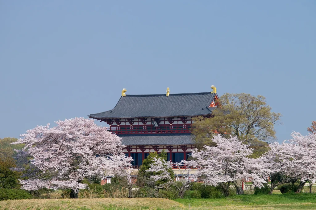 桜の見頃は毎年3月下旬から4月上旬で、特に週末は多くの人で賑わいます。平城宮跡で春の桜を楽しみながら、奈良の歴史的な雰囲気を満喫することができる、まさに一石二鳥の観光スポットです。