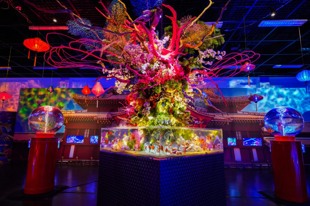 館内では、プロジェクションマッピングやLEDライトを駆使した幻想的な展示が楽しめます。特に人気なのが「ドルフィンパフォーマンス」で、音楽と光の演出が一体となったショーは圧巻です。イルカたちの華麗なジャンプやスピンに、子どもも大人も目を奪われることでしょう。