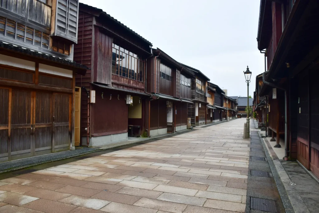 金沢のひがし茶屋街は、江戸時代から続く伝統的な茶屋街で、歴史的な雰囲気が漂う美しい街並みが魅力です。ここでは、古い町家が立ち並び、木造の建物や石畳の道が訪れる人々を迎え入れます。特に、茶屋の外観は、黒い漆喰の壁と白い格子窓が特徴的で、まるで時が止まったかのような感覚を味わえます。