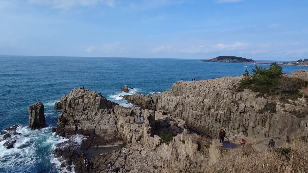 この海岸は、四季折々の自然の美しさを楽しむことができるため、訪れるタイミングによって異なる表情を見せてくれます。春には桜が咲き誇り、夏には青い海と白い砂浜が広がり、秋には紅葉が海と山を彩ります。冬には、雪化粧をした山々と荒れ狂う日本海のコントラストが、また違った美しさを演出します。
