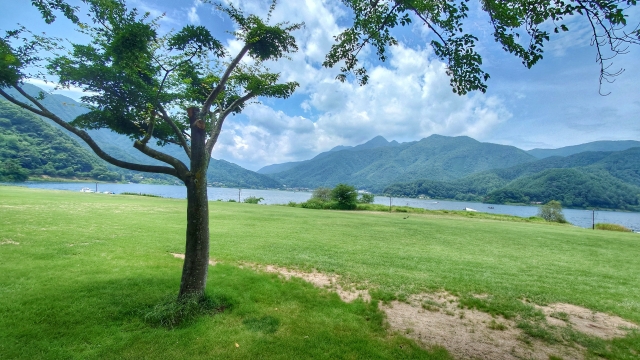 大石公園は、河口湖の北岸に位置する広大な公園で、富士山を背景にした美しい風景が楽しめる穴場スポットです。特に春には桜、秋には紅葉が見事で、四季折々の自然の美しさを堪能できます。公園内には広々とした芝生エリアがあり、ピクニックや散策に最適な場所です。また、湖畔に沿った遊歩道を歩けば、湖面に映る富士山の姿を楽しむことができ、写真愛好家にも人気のスポットとなっています。