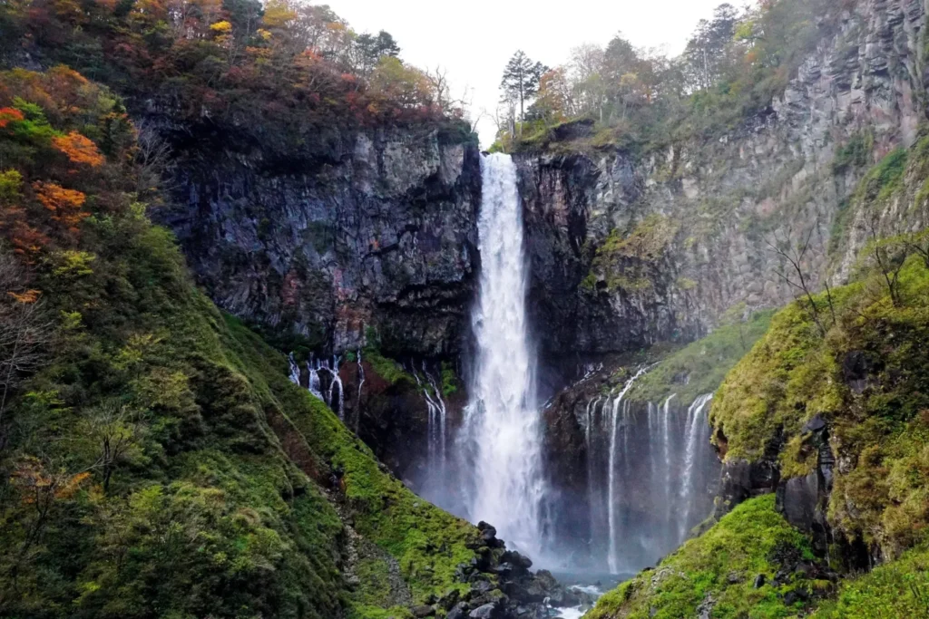 華厳の滝は栃木県日光市にある壮大な滝で、日光国立公園内に位置しています。落差は約97メートル、那智の滝(和歌山県)と袋田の滝(茨城県)と並び日本三名瀑の1つとしても有名です。四季折々の表情を見せる華厳の滝は、特に新緑の季節や紅葉の時期には、その色彩がさらに魅力を増します。