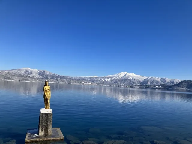 田沢湖は、秋田県に位置する深さ約423メートルの日本一深い湖です。美しいコバルトブルーで透明度の高い水面は、周囲の自然を映し出しその美しい景観と神秘的な雰囲気が魅力的です。また、湖畔からの眺めは息をのむ美しさで、四季折々の風景が楽しめます。