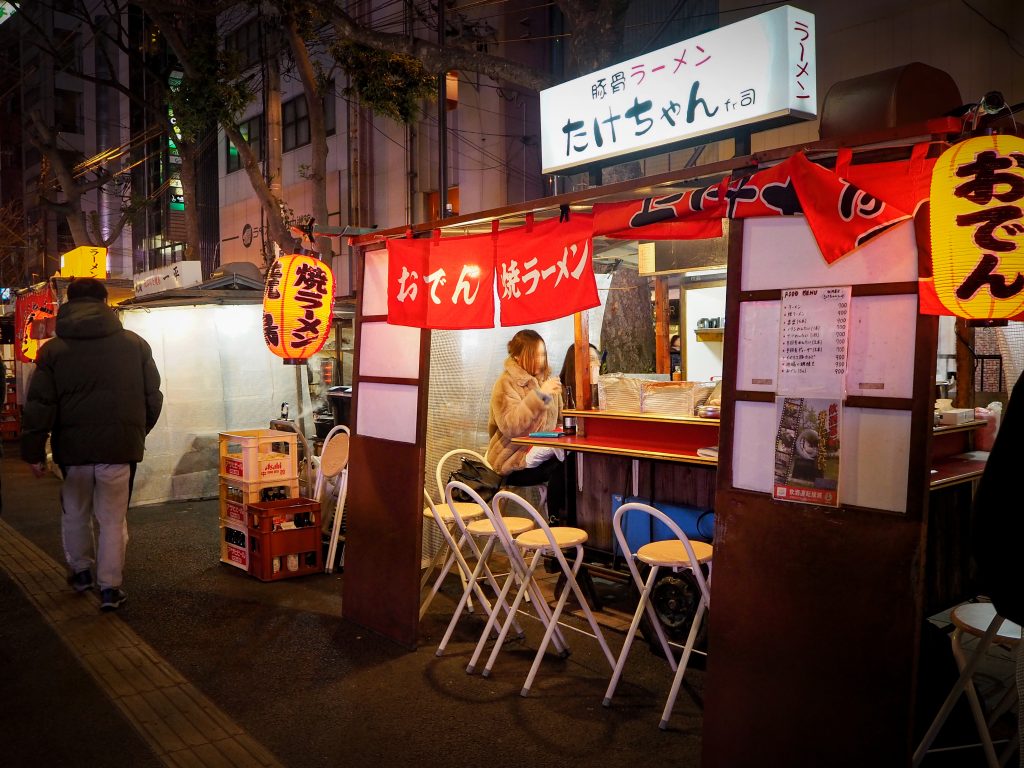 福岡の屋台文化を代表する「武ちゃん」は、中洲エリアにあり地元の人々に愛され続ける人気スポットです。天神エリアからもアクセスが良く、観光客にも訪れやすい立地にあります。ここでは、博多ラーメンや焼き鳥、もつ鍋など、福岡の名物料理を手軽に楽しむことができます。