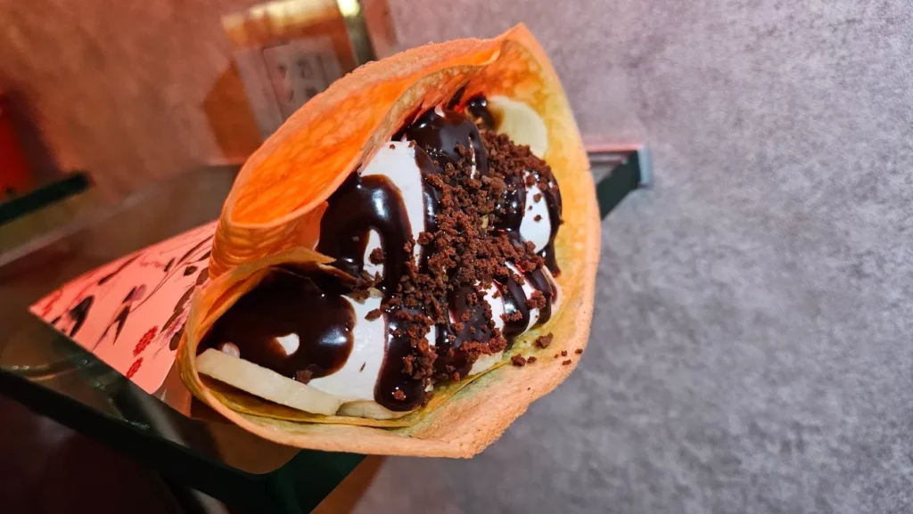 福岡の夜を彩るスイーツスポット「21時にアイス」は、まさに甘党のための楽園です。店名の通り、夜遅くまで営業しているため、仕事帰りや夜のお出かけの際にも立ち寄りやすいのが魅力。ここでは、見た目も味も贅沢なクレープが楽しめます。
