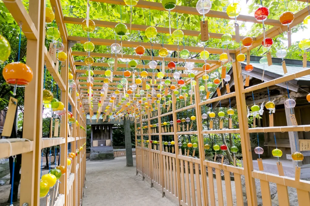 さらに、現人神社はインスタ映えスポットとしても人気です。特に、夏に開催される風林回廊では、カラフルな風鈴がたくさん吊るされ、その様子を目掛けて写真を撮りにくる人が大勢います。また、夜にはライトアップがされ、昼とは違った雰囲気の風鈴回廊を楽しむことが可能です。歴史と映えが融合したこの場所で、ぜひ素敵な写真を撮影してみてください。古代の雰囲気を感じながら、心に残るひとときを過ごすことができるでしょう。
