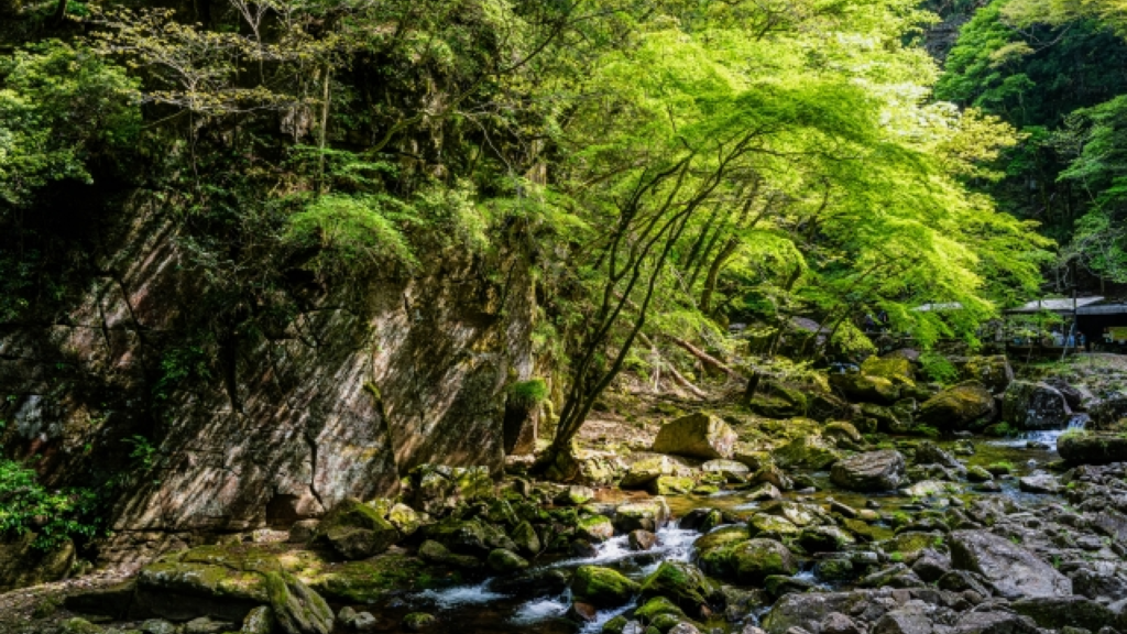 ここは、その名の通り巨大な屏風岩が印象的な自然公園で、四季折々の美しい景色を楽しむことができます。春には桜、秋には紅葉が彩る絶景を楽しめ、散策路を歩くとまるで異世界に迷い込んだかのような神秘的な雰囲気が漂います。写真家にも人気のスポットで、静かな時間を過ごしたい方におすすめです。