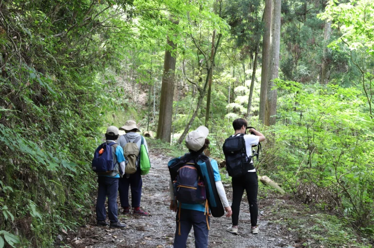Ukiha City Forest Therapy offers the perfect program to refresh both body and mind in nature. Visitors can enjoy strolling along well-maintained forest trails and taking in the beautiful seasonal scenery, such as vibrant fresh greenery in spring, terraced rice fields in early summer, and fiery autumn leaves.