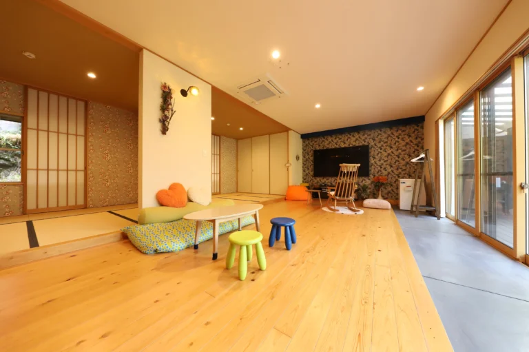 Ukiha Koshio no Akari is a secluded private inn nestled in the peaceful mountains of Ukiha City. Known as “Firefly Village,” the area offers a magical view of thousands of fireflies during summer. The inn, accommodating only one group per day, provides privacy and relaxation with scenic terrace views of rice fields. Guests can enjoy seasonal barbecue or hot pot dining plans.