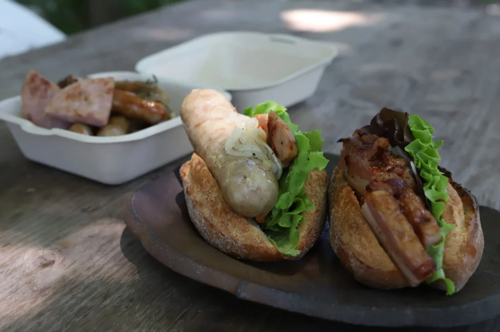 浮羽稲荷神社から車で約15分の場所にあるリバーワイルドは、地元の新鮮な食材を使った料理が楽しめるカフェです。ハム・ソーセージとホットドックのお店で、お店で育てた豚をハム・ソーセージ・ベーコンに加工し、販売をしています。カフェでは、自慢のハム・ソーセージを使用したホットドックをいただくことができます。川沿いのテラス席で、自然の音を聞きながらゆったりとした時間を過ごすことができます。美味しい食事とともに、うきは市の自然を満喫しましょう。