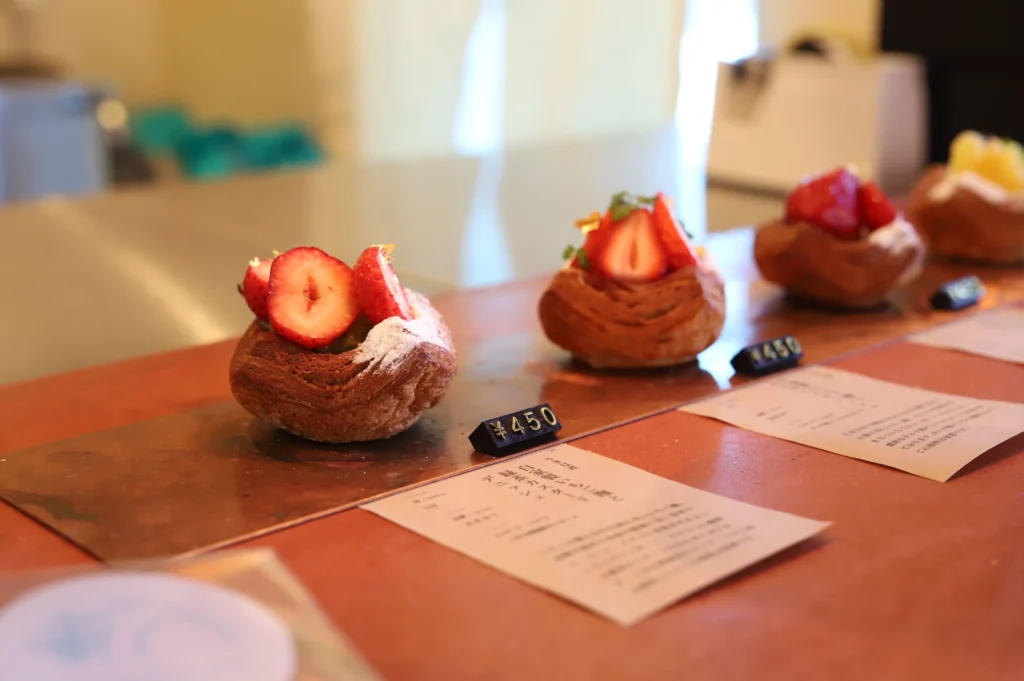 「御菓子処 ひた屋福富」で和菓子を堪能した後は、少し歩いて「カワセミデニッシュ」へ向かいましょう。このベーカリーは、地元の新鮮な食材を使ったデニッシュが評判です。
