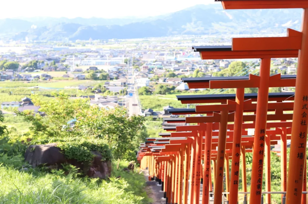 うきは駅から車で約5分、浮羽稲荷神社に到着します。この神社は、赤い鳥居が連なる美しい参道が特徴で、訪れる人々を魅了します。参道を歩きながら、心を落ち着けて神聖な雰囲気を感じることができます。境内には豊かな自然が広がり、四季折々の風景を楽しむことができます。特に春には桜が咲き誇り、写真撮影にも最適なスポットです。